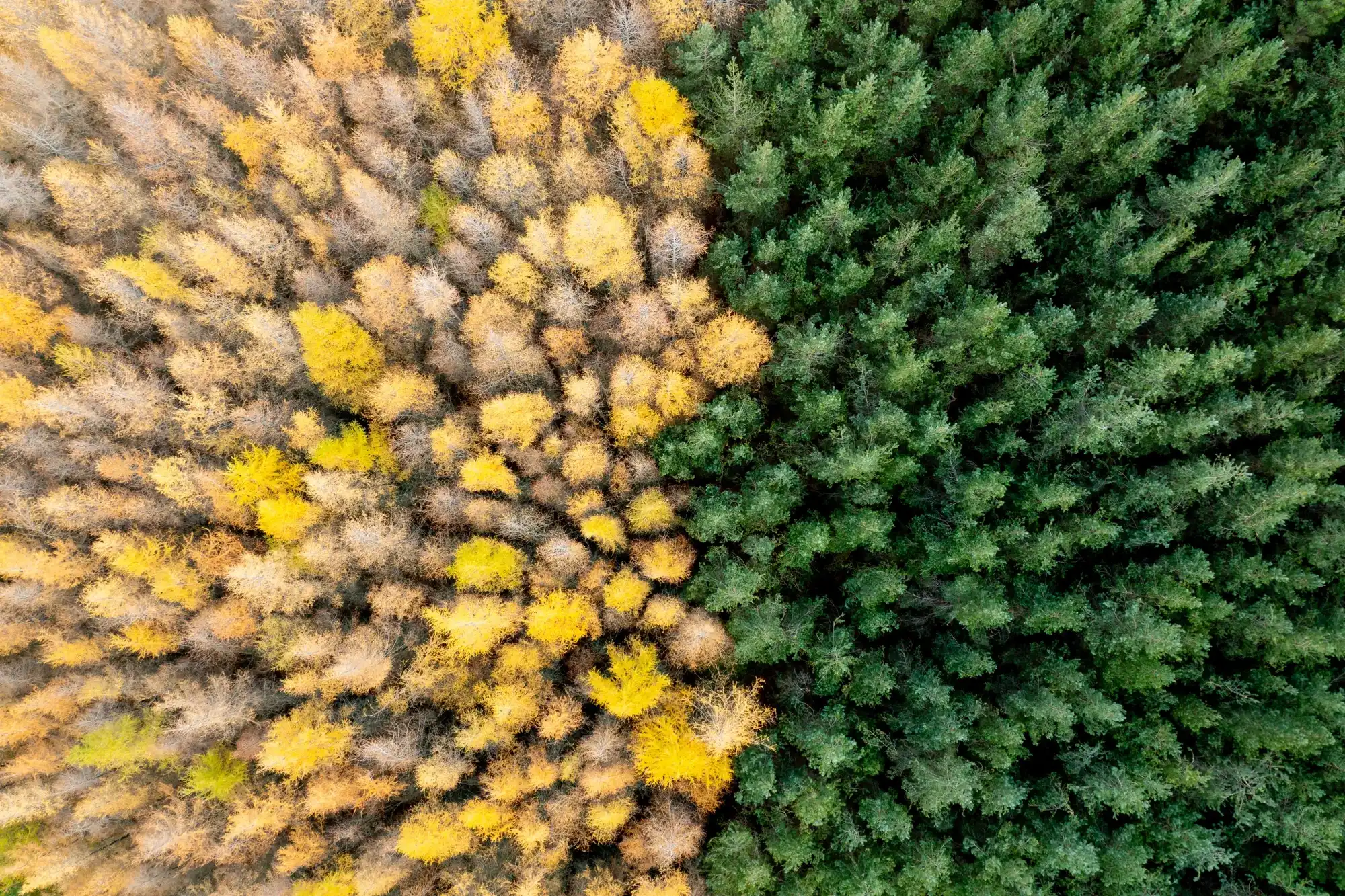 “Forest Duel,” captured in Cairngorms National Park, Scotland, is an evocative aerial photograph showcasing a striking juxtaposition of nature’s seasonal transformation. This image, taken by Thomas Andy Branson, reveals a sharp division between two distinct forest areas: one side dominated by golden-hued deciduous trees shedding their leaves, signaling the onset of autumn, while the other side is a dense expanse of evergreen conifers, maintaining their lush, verdant foliage. The photograph highlights the natural contrast between deciduous and coniferous forests, each with its unique seasonal behavior and ecological significance. The golden side, likely consisting of larches or other deciduous species, stands in stark contrast to the unchanging, deep green canopy of the conifers, perhaps spruces or firs, that remain vibrant throughout the year. Set in the expansive Cairngorms National Park, the largest national park in the United Kingdom, this image not only captures the raw beauty of the Scottish Highlands but also emphasizes the biodiversity and the dynamic processes at play within forest ecosystems. The park, renowned for its wild landscapes, diverse wildlife, and ancient woodlands, serves as a perfect backdrop for this mesmerizing natural duel. “Forest Duel” serves as a visual reminder of the continuous cycles of change and stability in nature, inviting viewers to appreciate the intricate balance and the ever-evolving beauty of the natural world.