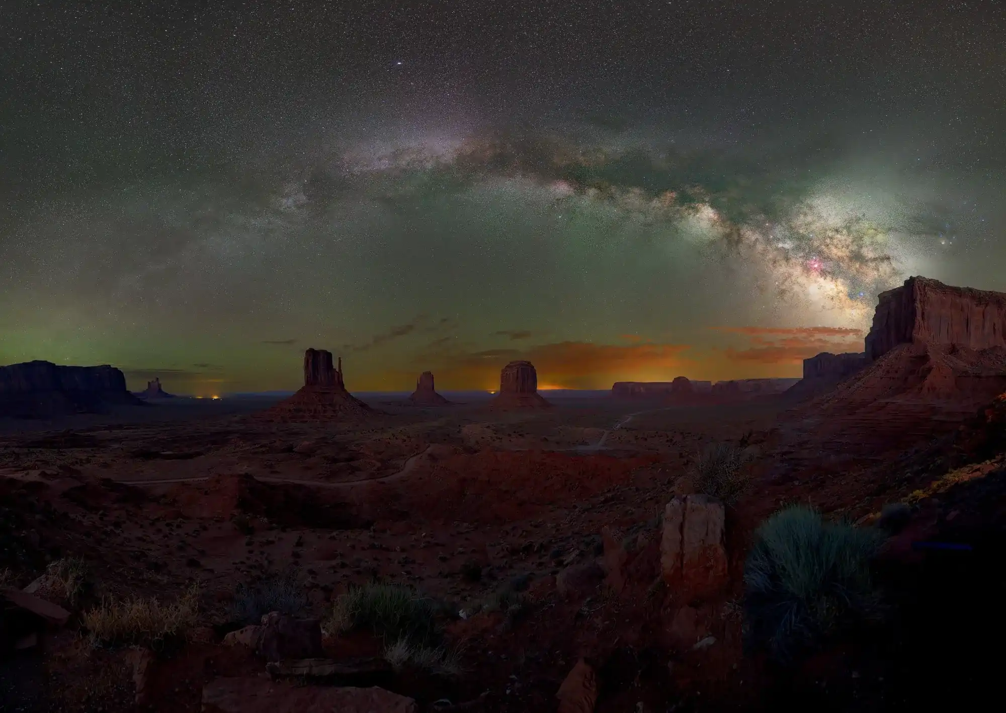 Cosmic and geological time meet in this shot in Monument Valley, USA, where rock formations have withstood millions of years of erosion, the night sky reveals their history on even older timescales.